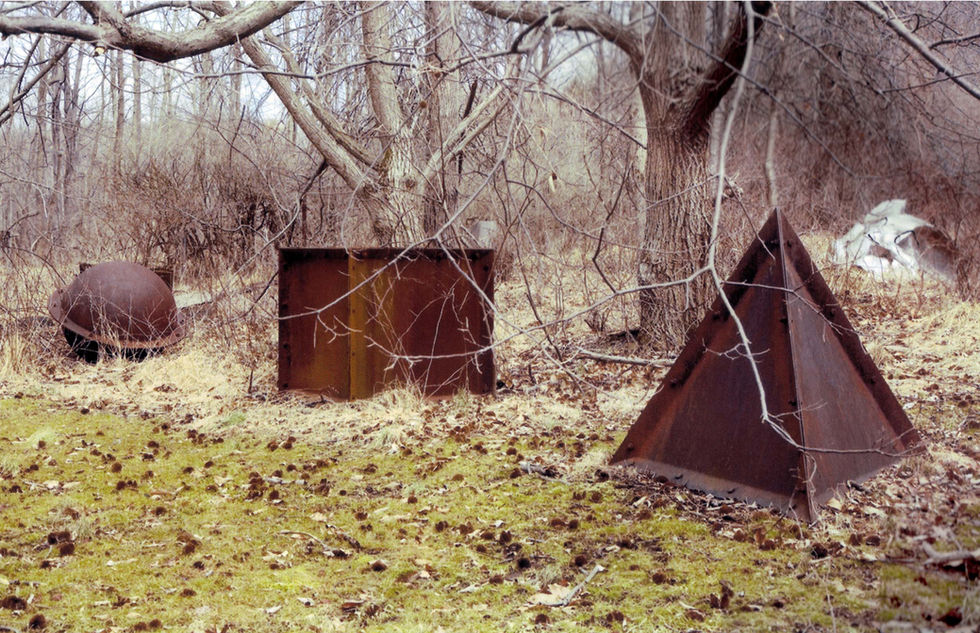 "Geometric figures are your friends and your enemies at the same time, so you just conjure them up, draw them, and you can have a whole range of reactions to them, these certainties. You can fight against them or you can go with them. You know, there’s a huge amount of energy I devoted to defiling these figures, but then in the early 1970s I thought, wait a minute, I spend all this energy attacking these geometric eternals, what would happen if I would turn around and protect them from my own aggression? This is what led to Repository for This Eternal Figure, which is the biggest piece I’ve made. It consists of three units, each made of quarter-inch steel plate: a sphere, a cube, and a tetrahedron. Each is essentially a mold for the three basic geometric solids. In other words, each is a repository, the negative space for that specific pure geometric figure. […] But later, at other times, I returned to defiling geometric forms, inflating or squeezing them, and so on. You know, for me, it’s an eternal play."